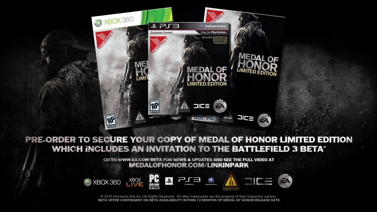 First it was the inclusion of Medal Of Honor: Frontline for the PS3 version, next it was extra weapons which will be available day one, and now EA has announced another inclusion in the upcoming Medal of Honor Limited Edition, access to the Battlefield 3 beta and extra camouflages.  There was no word on when the Battlefield 3 beta would be dropping, only that purchasing the Limited Edition would give you access to it (with some restrictions).